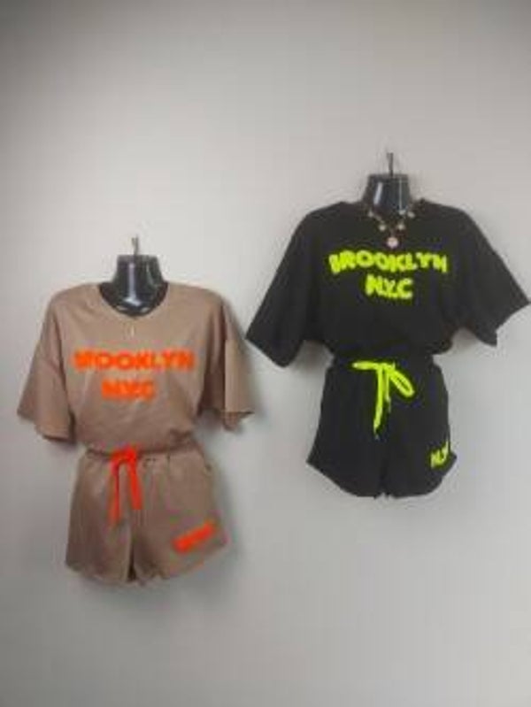 Het broekje heeft steekzakken, korte pijpen en een elastieke tailleband met aanrijgkoord.